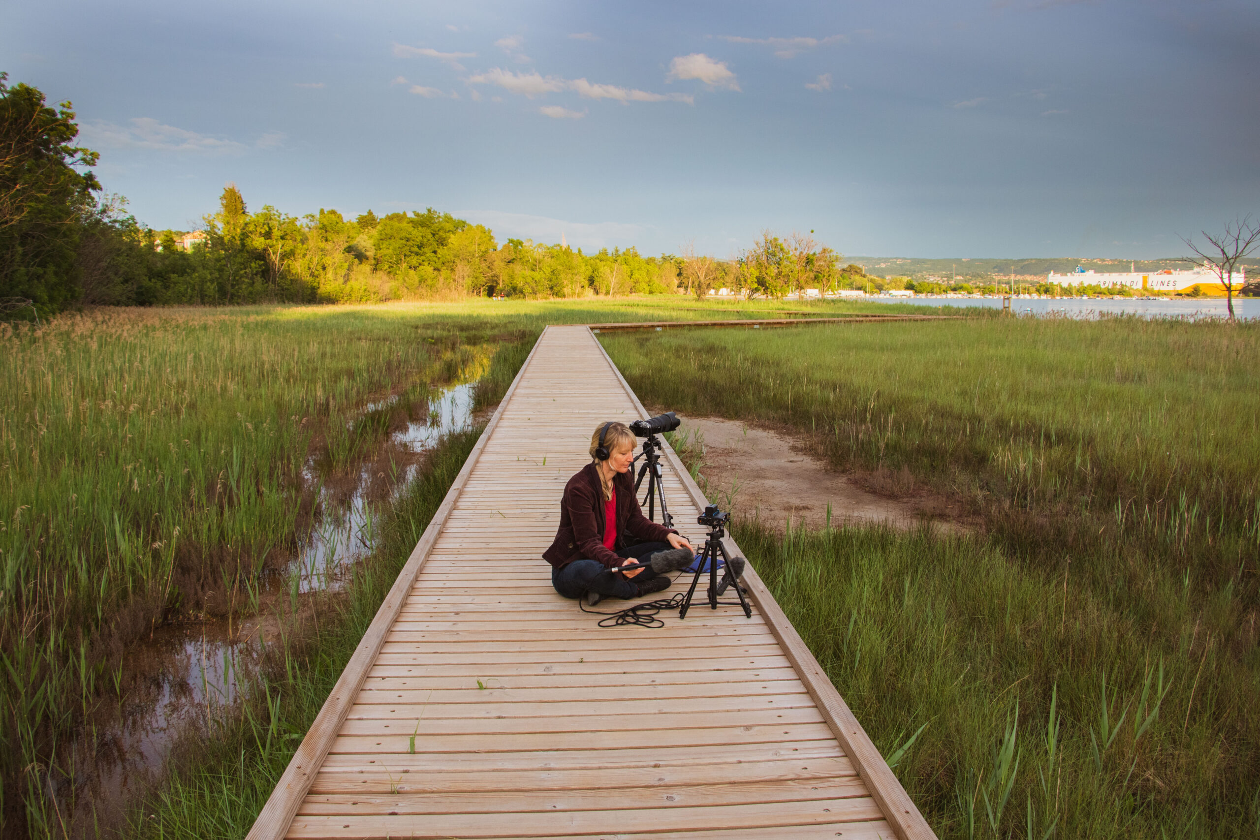 »Veliko se ukvarjam z zvočnimi projekti in pred nekaj leti, ko so širili pristanišče, sem prav tu, kjer zdaj sediva, snemala industrijske zvoke zabijanja pilotov. Mimo mene je prišla mala bela čaplja in začela loviti ribe. Pri tem je dajala vtis, kot da pleše balet. Poskakovala je, dvigovala krilca, delala piruete …«