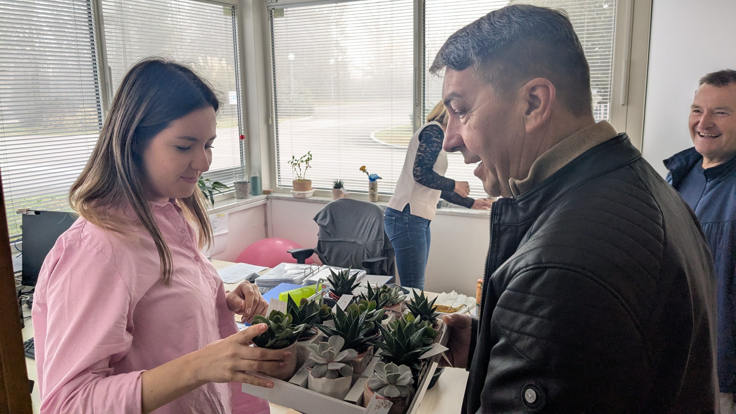 Poleg naših mladih pomočnikov – Sare, Aide, Melise in Matije – so cvetje delili tudi otroci iz skupin Ribice in Delfini iz Vrtca Ankaran, ki so obiskali zaposlene v središču Ankarana. Zaposlene v Občini Ankaran in Javnem zavodu za naravo in družbo Ankaran pa sta s prikupnimi sukulentami obdarovala direktor občinske uprave Iztok Mermolja in sodelavec Egon Ražman.
