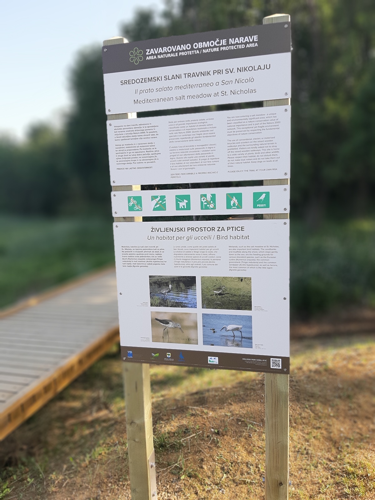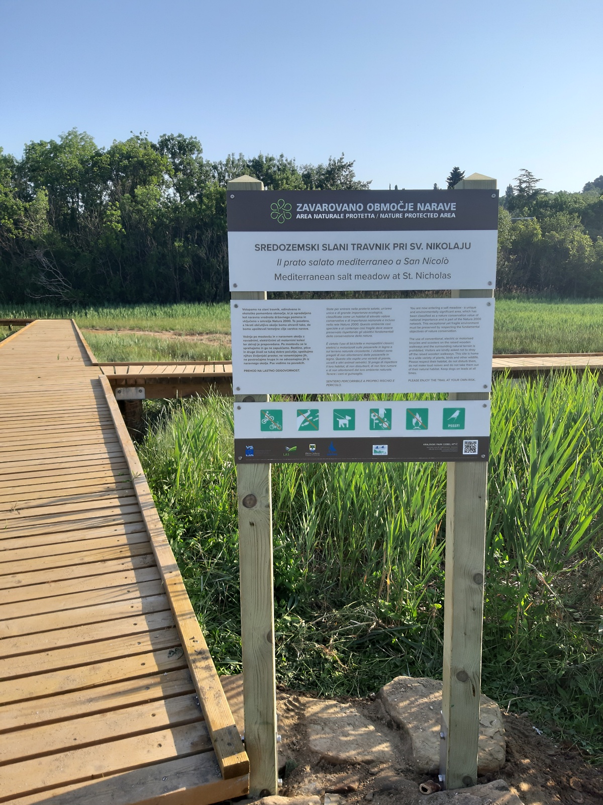 Foto: Občina AnkaranLeseni mostovž kot del obalne pešpoti poteka čez slani travnik Sv. Nikolaja, ki spada v Naturo 2000 in je prvotno nastal z namenom zaščite edinstvene vegetacije, ki bi jo nepazljivi obiskovalci lahko poteptali. Na slanem travniku, edinem tovrstnem v Sloveniji, so tudi redke in ogrožene rastlinske vrste. Občani in obiskovalci kraja so prenovljeni mostovž zelo dobro sprejeli kot sprehajalno pot, ki je hkrati tudi učna pot. Občina je tako s postavitvijo informativnih in usmerjevalnih tabel poskrbela, da bo učna pot zaživela v polni meri, dodatno pa bo lokalni skupnosti in zainteresiranim varovano območje narave predstavljeno z delavnicami in ekskurzijami.