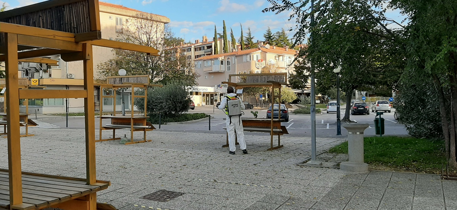 La disinfezione quotidiana delle aree pubbliche (mercato, parco giochi per bambini, panchine e fermate degli autobus nel comune di Ancarano) verrà effettuata in mattinata. Il mercato verrà disinfettato prima dell'apertura (entro le 8 del mattino), la disinfezione delle fermate degli autobus verrà adeguata all'orario delle corse e verrà eseguita quando non ci sono passeggeri alle fermate.