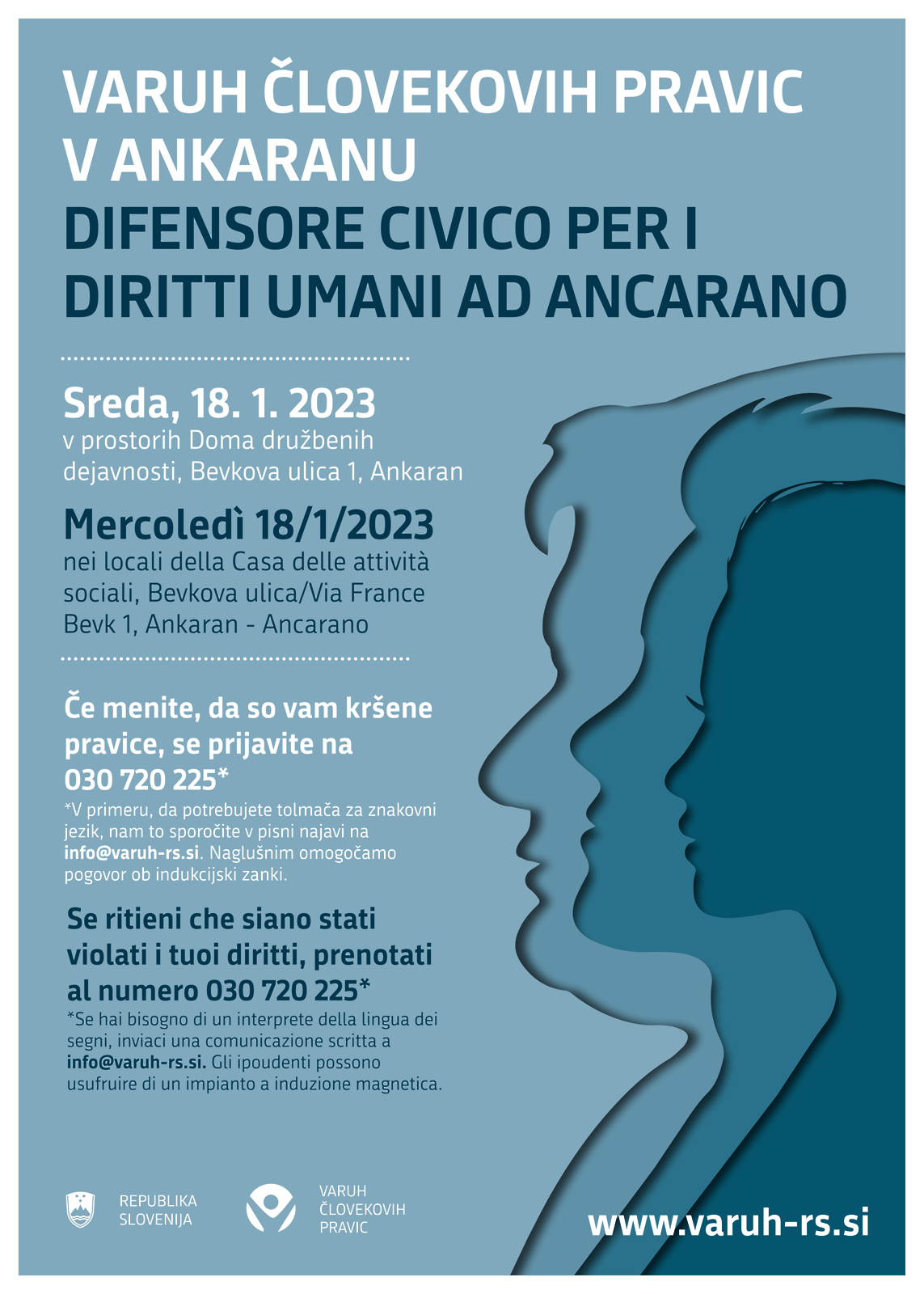 Mercoledì, 18 gennaio il difensore civico Peter Svetina, visiterà il comune di Ancarano, con i suoi collaboratori sarà a disposizione dei cittadini. Chiunque ritenga di aver subito una violazione dei propri diritti e desideri discuterne può chiamare al numero 030 720 225 fino al 13 gennaio.