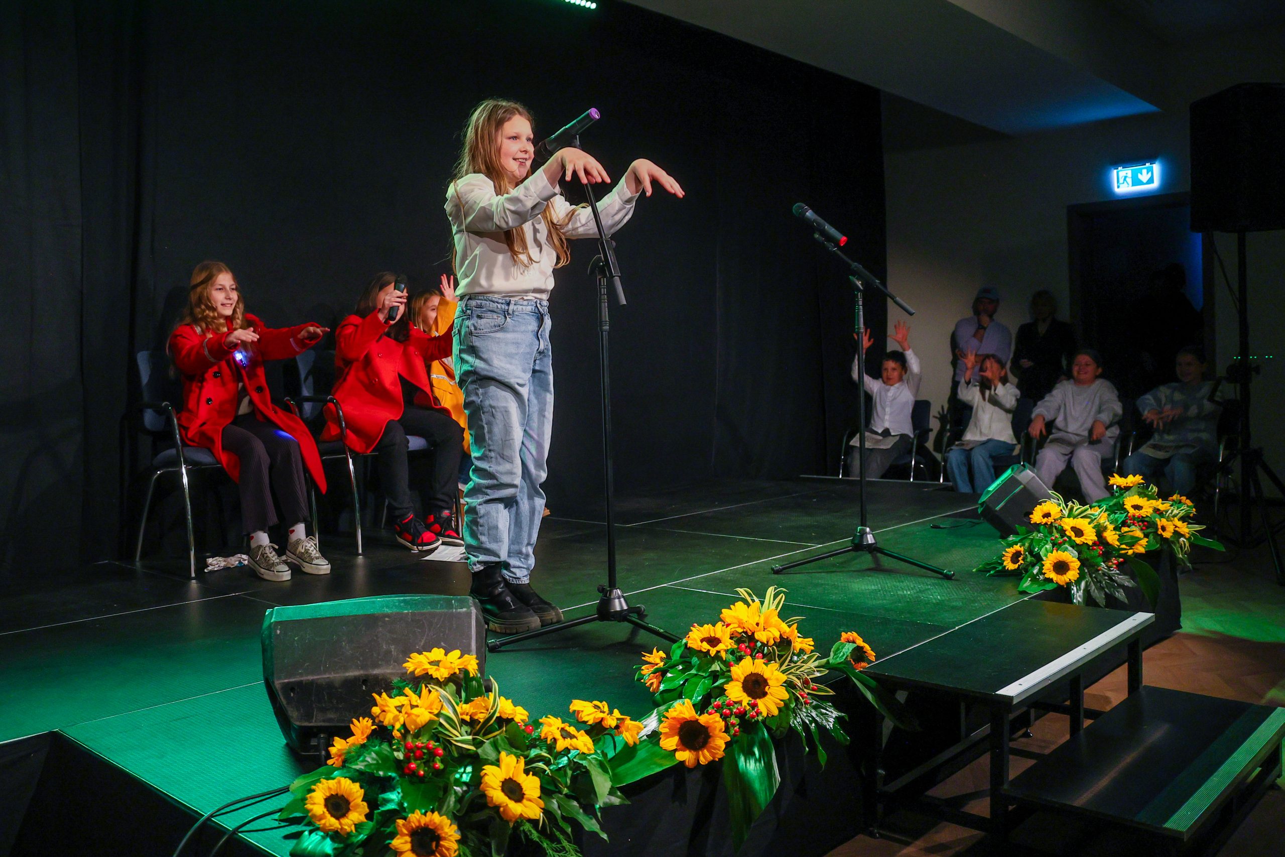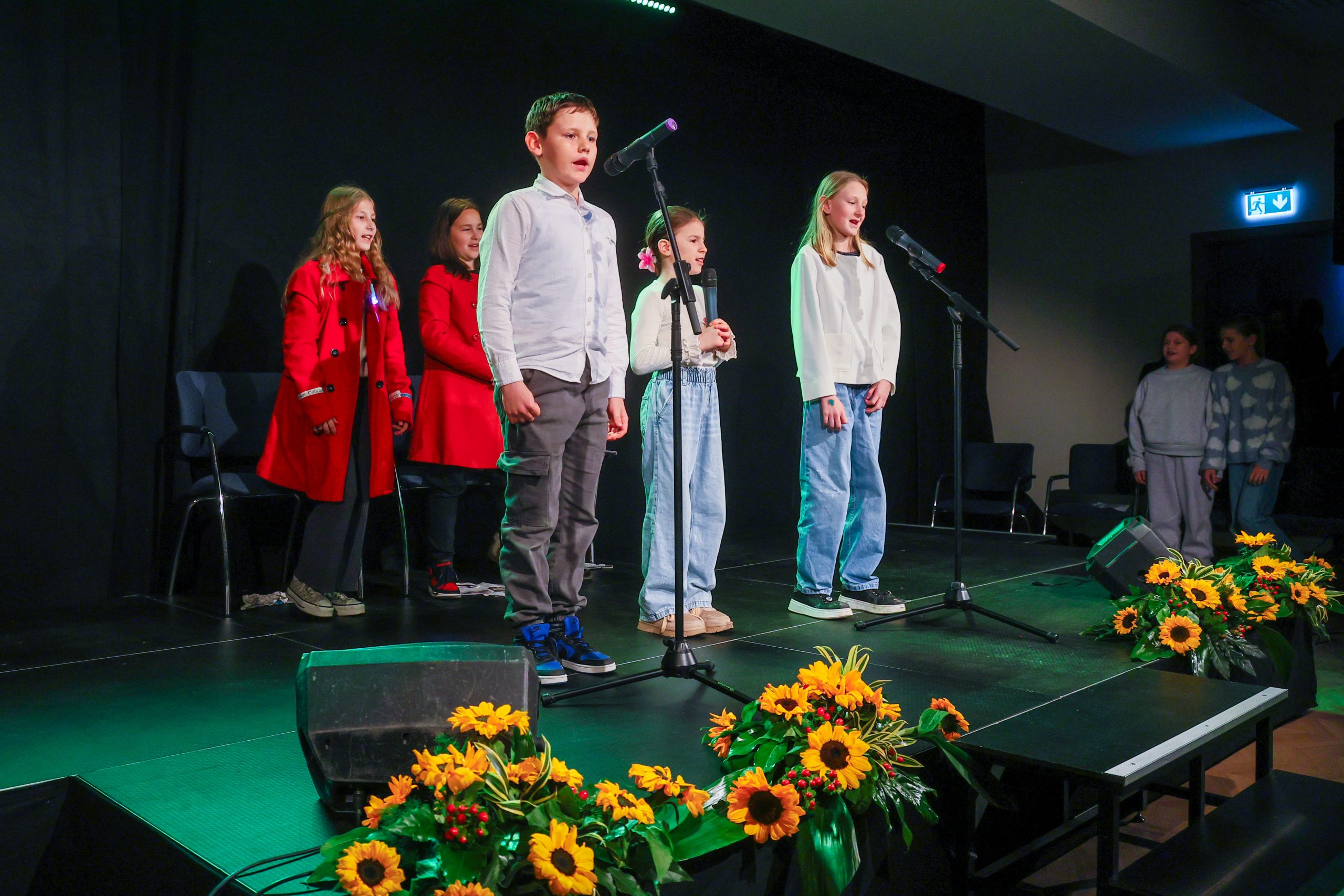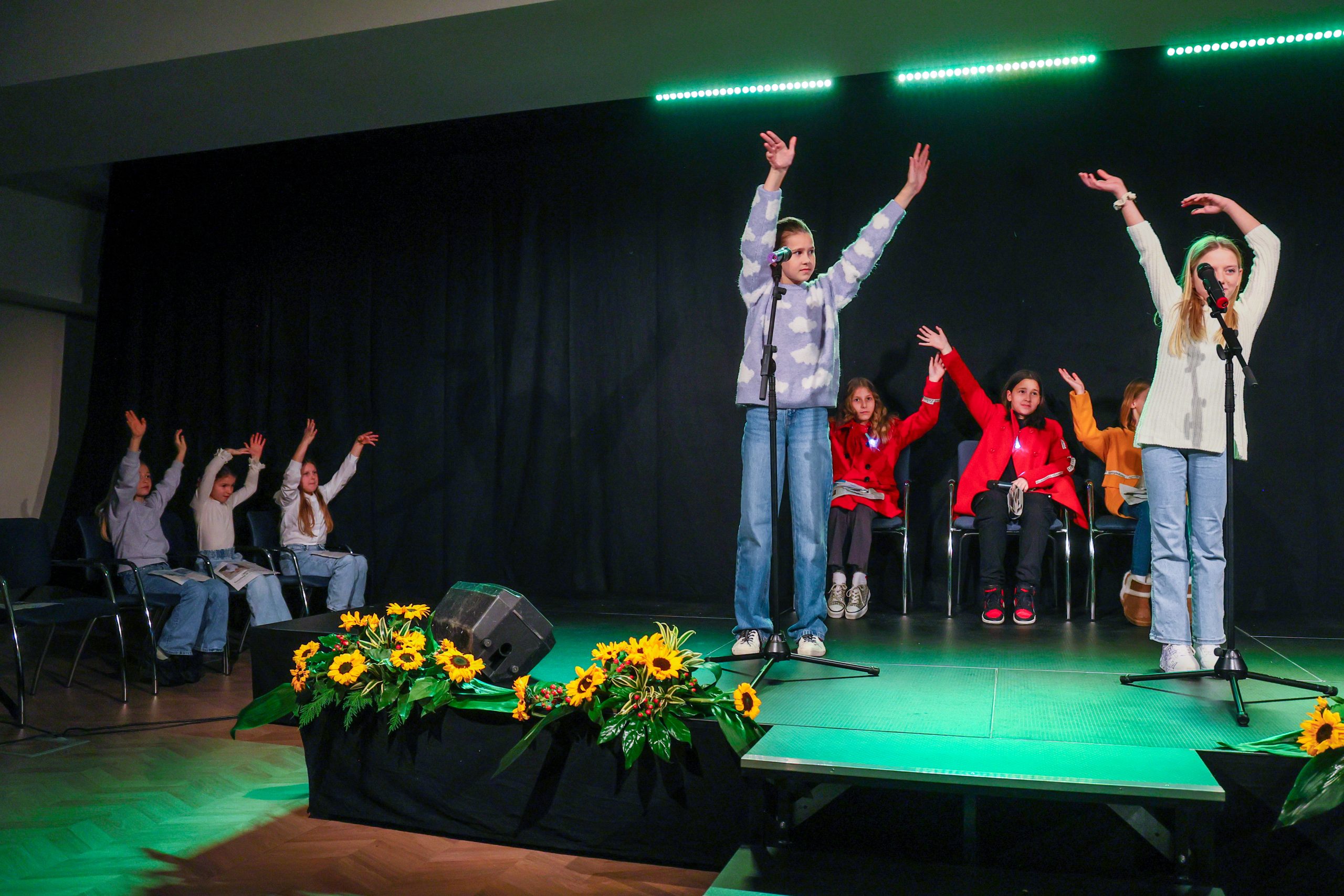 Prireditveni prostor, v katerem je domači umetniški kolektiv društva 5. kader s premišljeno scenografijo pričaral gledališko vzdušje, je nato zapolnilo zborovsko petje učencev OŠV Ankaran pod taktirko Igorja Smolnika. Slišali smo uglasbeni Kosovelovi pesmi Večer in Burja ter Prešernovo Kam. Občinstvo so navdušili tudi mladi gledališčniki, četrto- in petošolci, ki ustvarjajo pod mentorstvom Valentine Šukljan. V svojem nastopu, ki so ga poimenovali Svet, poln sonca, so interpretirali Kosovelove pesmi Majhen plašč, Dete na travi, Večer, Kje, Burja in Sonček boža. Pod mentorstvom Anje Rudolf sta Kosovela (Nocoj smo in Jutro na Krasu) recitirali tudi učenki Zala Pahor in Valnea Pucer. Z glasbenim nastopom je kulturni program obogatila pevka iz Ankarana Anea Mlinar ob spremljavi kitarista Mateja Mittendorferja.