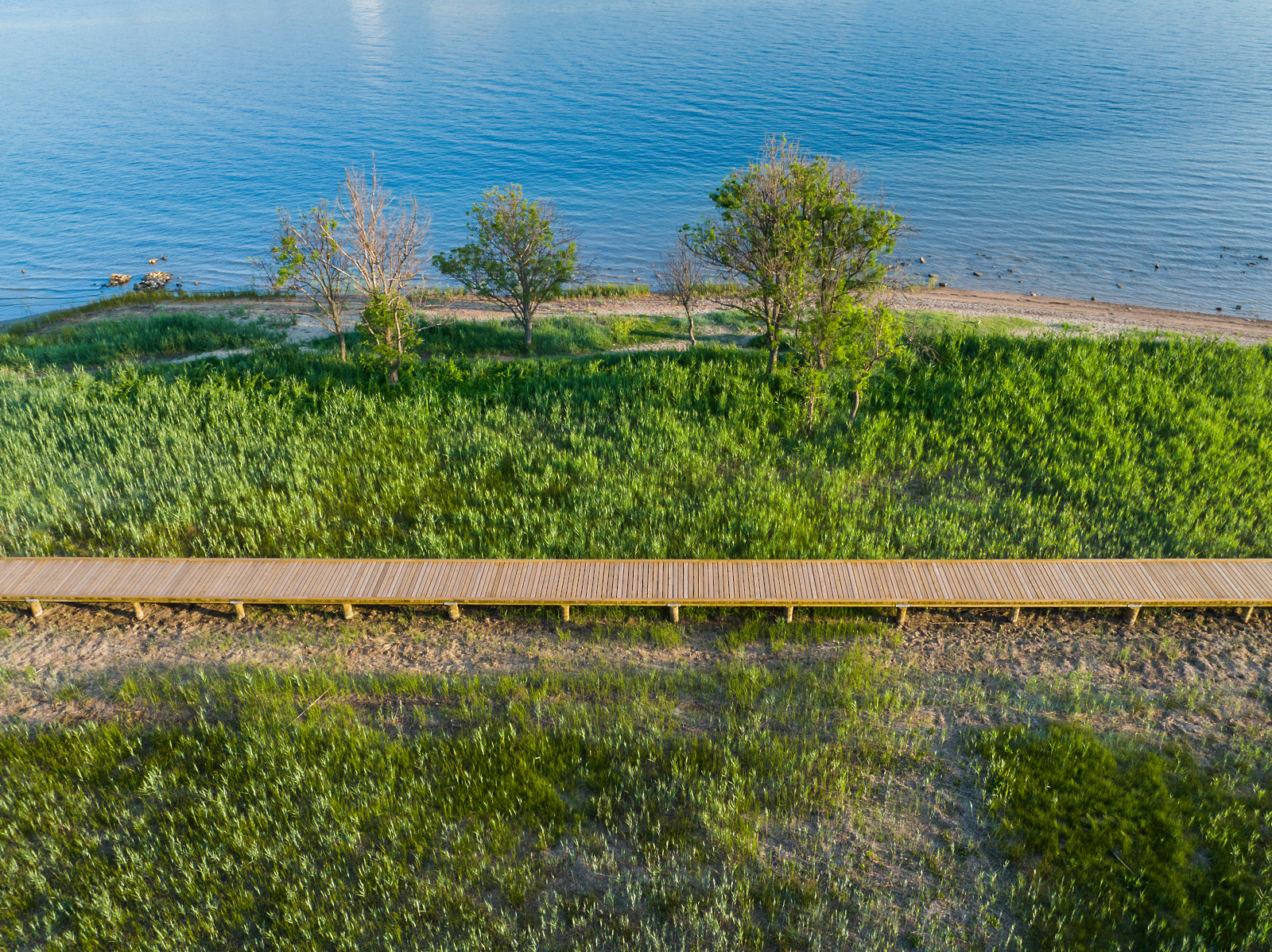 Prvotni leseni mostovž čez slani travnik med Sv. Nikolajem in Sv. Katarino, ki je nastal na pobudo piranskega zavoda za varstvo narave z namenom zaščite edinstvene vegetacije Nature 2000 pred napazljivi obiskovalci, se je zamenjal in se podaljšal vse do Sv. Katarine, kjer se nadaljuje v 105 m dolgo tlakovano pot, ob kateri je telovadnica na prostem z javno razsvetljavo in klopmi ter košem za smeti. Lokalna skupnost je z namenom nadgradnje obalne pešpoti s prijavo projekta Čez slani travnik na Las Istre pridobila sofinanciranje iz Evropskega regionalnega sklada, v okviru katerega sta bili urejeni telovadnica na prostem, javna razsvetljava in postavljena je bila urbana oprema. Obenem je z interpretativnimi tablami vzdolž mediteranskega travnika zaživela tudi učna pot.