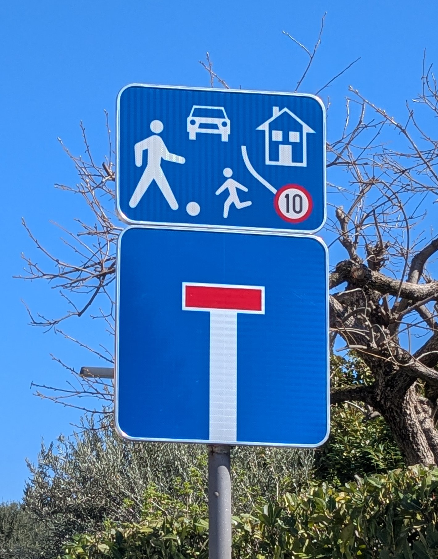 Leta 2025 so bili v ulice zgornjega naselja nameščene table, s katerimi se pešce in voznike obvešča, da gre za mešane prometne površine. Tu je hitrost omejena na 10 km/h, medtem ko je v naselju generalna omejitev 30 km/h.
