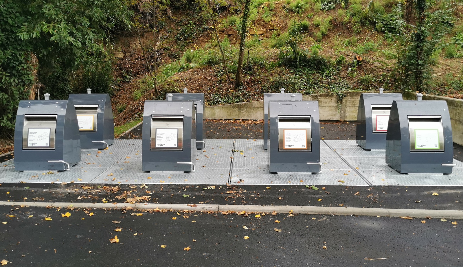 Novi zabojniki so označeni enako, kot vsi ostali na običajnih ekoloških otokih: rjava barva predstavlja zabojnik za biološke odpadke, rumena za mešano komunalno embalažo (plastično in kovinsko), rdeča za papir in karton, zelena za steklo ter črna za preostanek odpadkov, ki ne sodi v nobeno izmed ločenih frakcij.