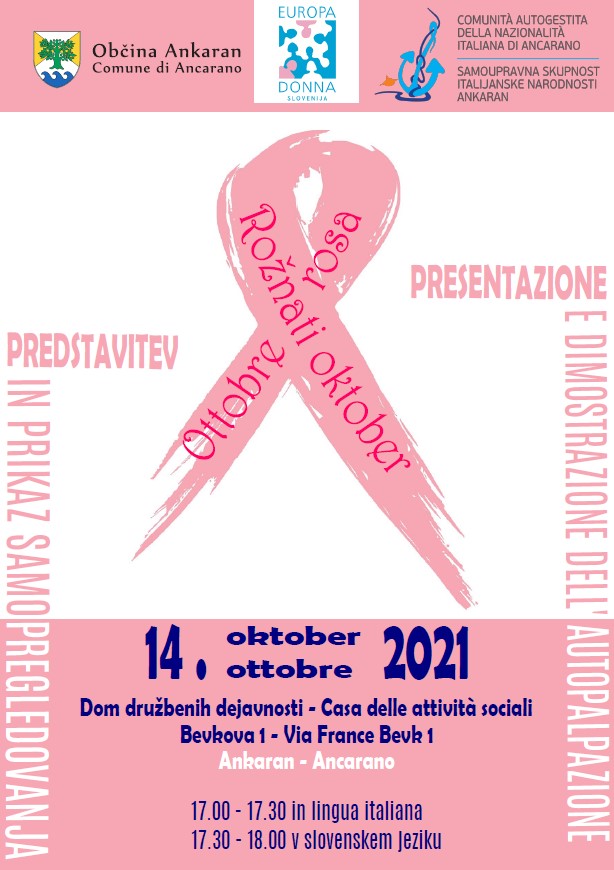 - 17.00 – 17. 30: predstavitev in prikaz samopregledovanja dojk v italijanskem jeziku,