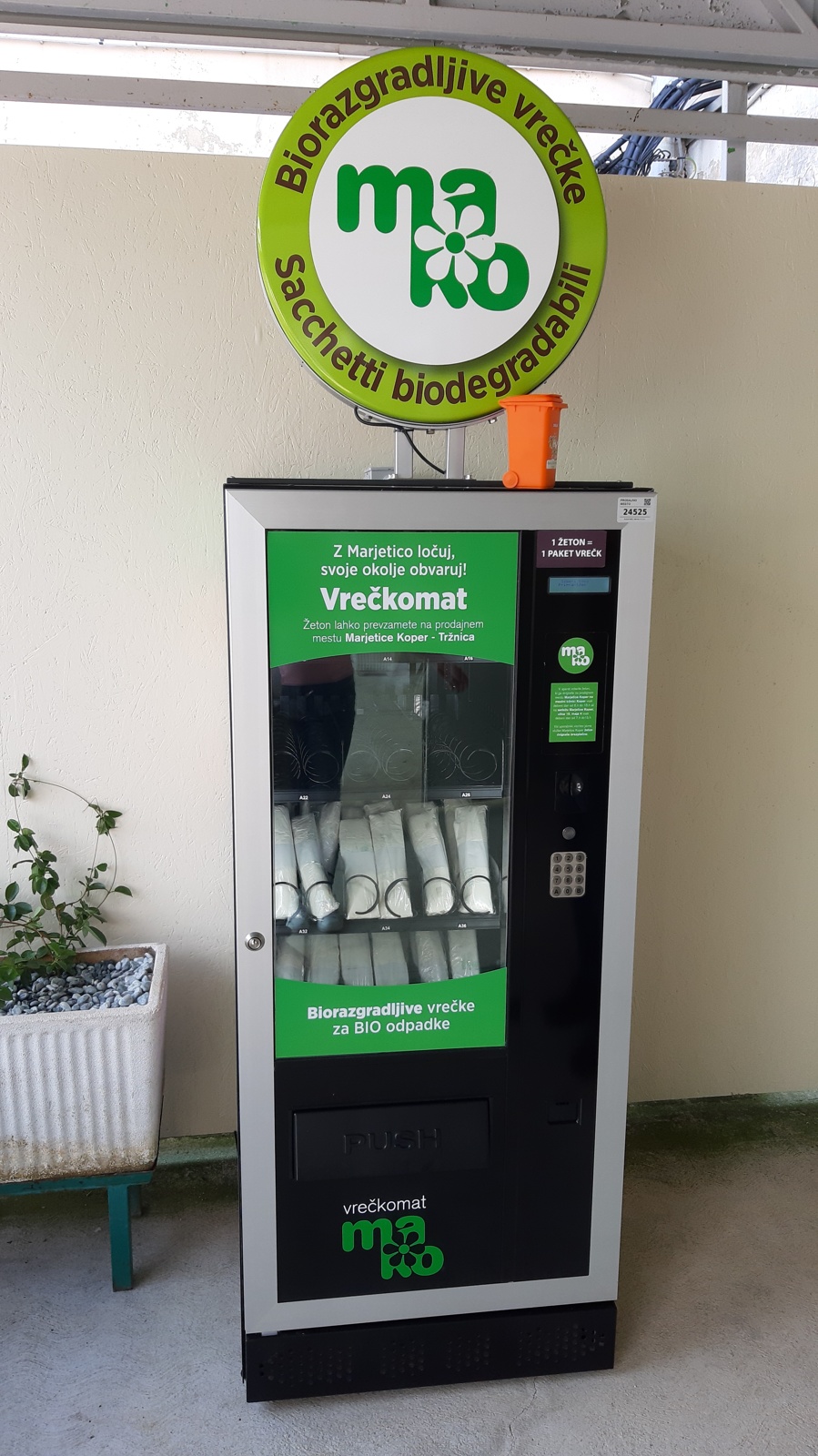 Marjetica Koper je konec lanskega leta na koprski tržnici postavila vrečkomat z biorazgradljivimi vrečkami, ki so namenjene tistim občanom, ki so vključeni v sistem rednega odvoza odpadkov in nimajo hišnega kompostnika. To sredo, 5. junija, pa bo vrečkomat svoje mesto našel tudi pred sedežem Občinske uprave na Regentovi 2 v Ankaranu.