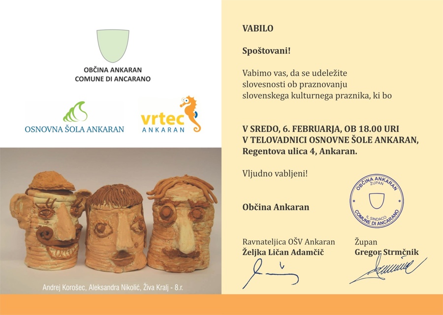 Vabilo na prireditev ob kulturnem dnevu